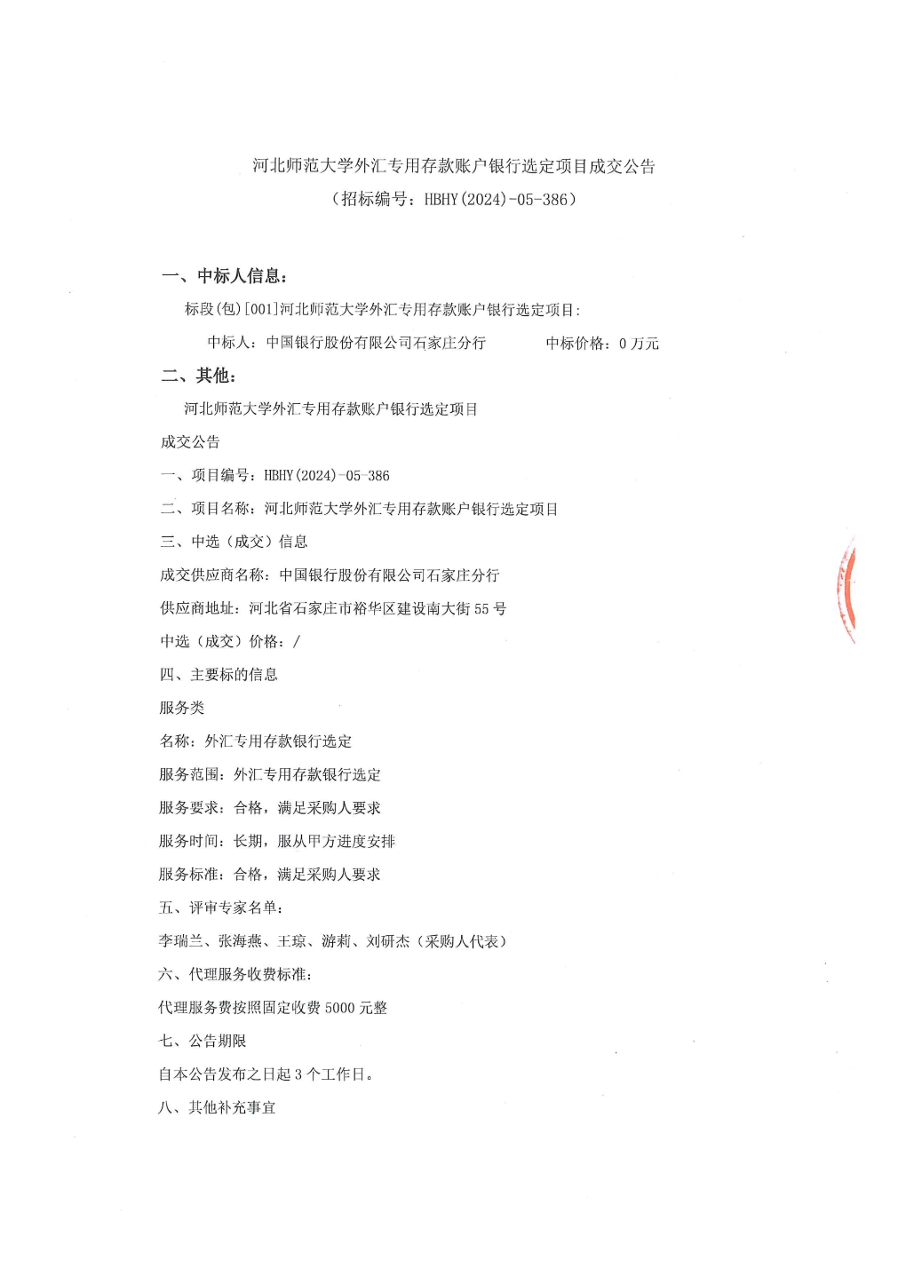 本站音讯欧洲杯体育,凭证天眼查APP信息整理,12月27日公布的《河北师范大学外汇专用入款账户银行选择技俩成交公告》中露馅中国银行股份有限公司石家庄分行中标。公告施行如下: